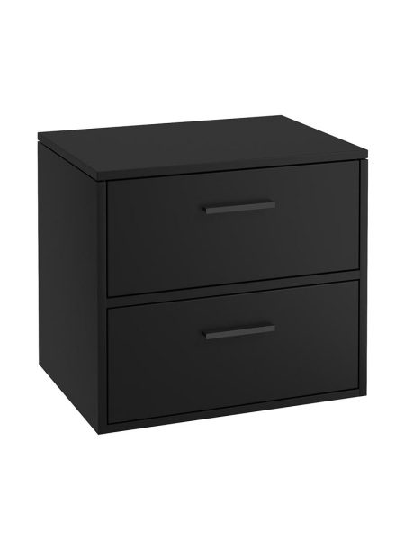 60cm wall hung countertop vanity unit with 2 soft close drawers and Matt Black handles – W600 x D450mm