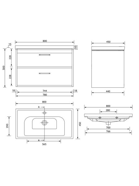 Two Drawer Wall Hung Unit – Drawers are metal box soft closing
