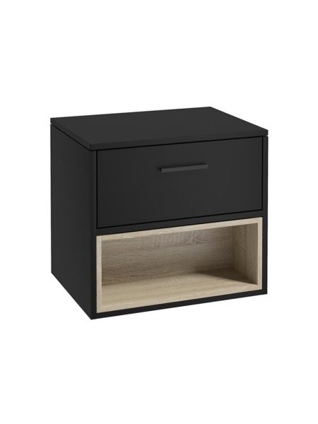 60cm wall hung Countertop vanity unit with 1 soft close drawers and Matt Black handles – W600 x D450mm