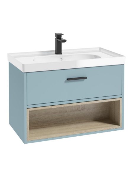 80cm wall hung vanity unit with 1 soft close drawers and Matt Black handle – W800 x D450mm