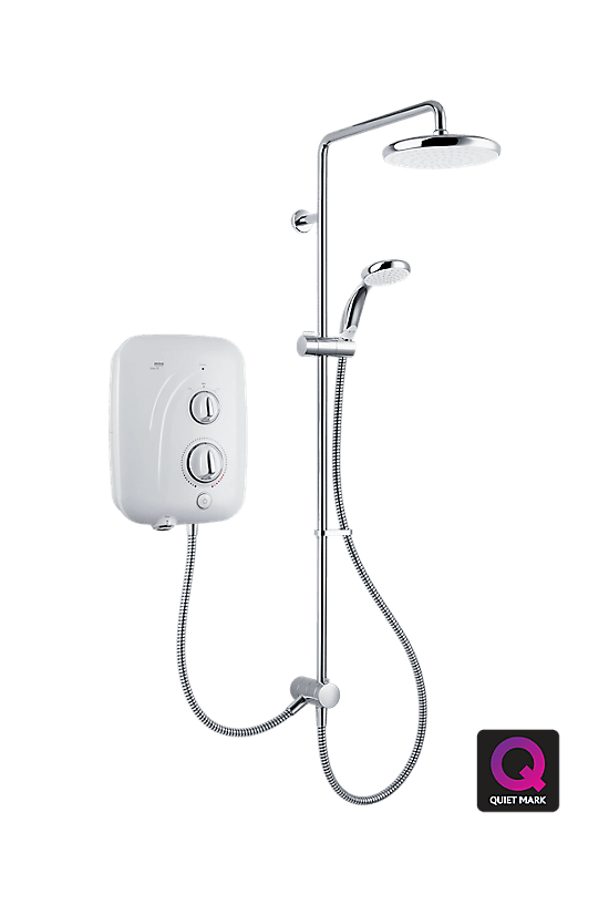 Designed for silent showering the Mira Elite SE pumped electric shower takes cold water on low pressure, gravity fed systems and silently delivers a strong and consistent performance. Divert between the large overhead and handheld showerhead for double the experience.