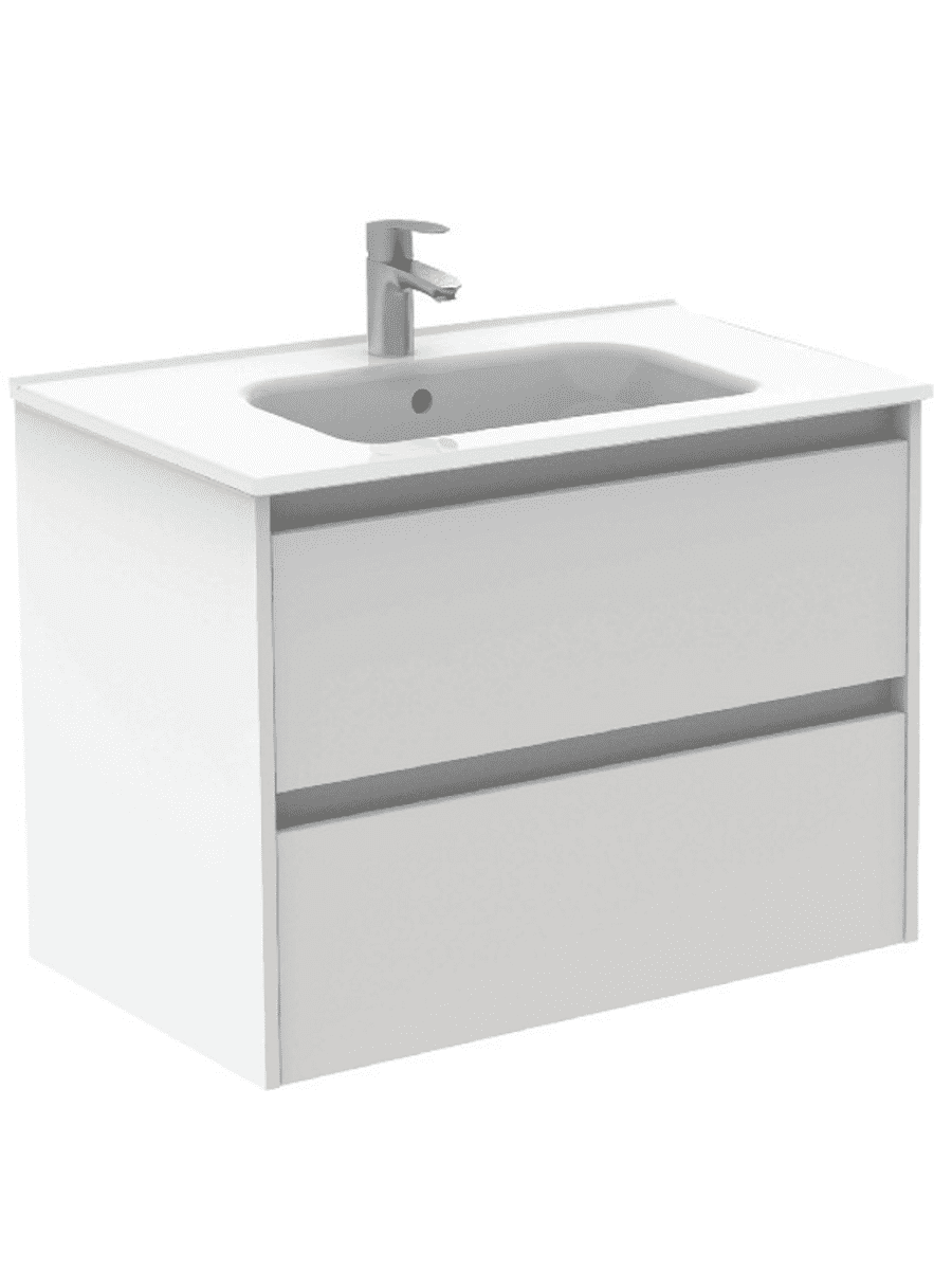 SMART Gloss White 80cm Wall Hung Vanity Unit 2 Drawer and Slim Basin