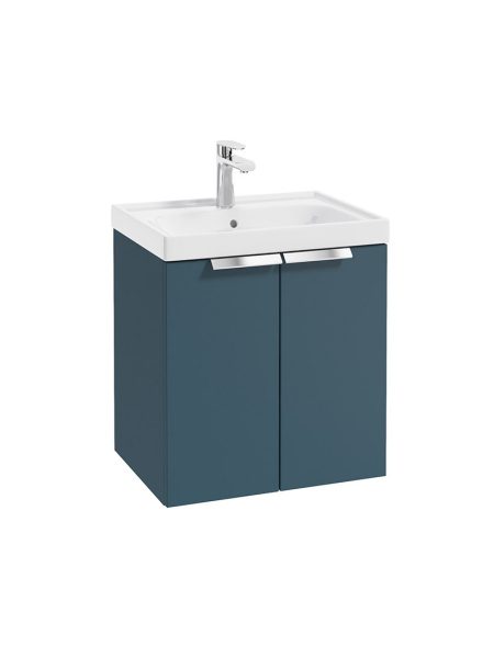 STOCKHOLM 50cm Two Door Wall Hung Matt Ocean Blue Vanity Unit – Brushed Chrome Handles