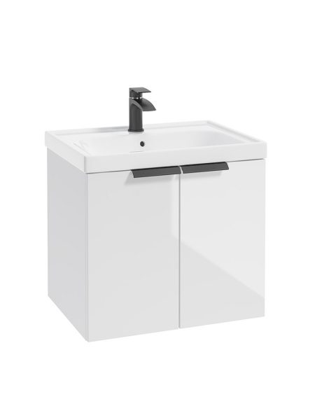 60cm wall hung design, unit with 2 soft close door and matt black handles. W600 x D450mm