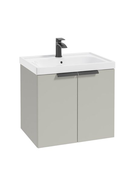 60cm wall hung design, unit with 2 soft close door and matt black handles. W600 x D450mm