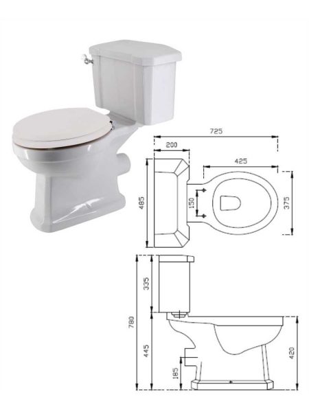 WESTBURY Close Coupled Toilet including White Mdf Soft Closing Seat