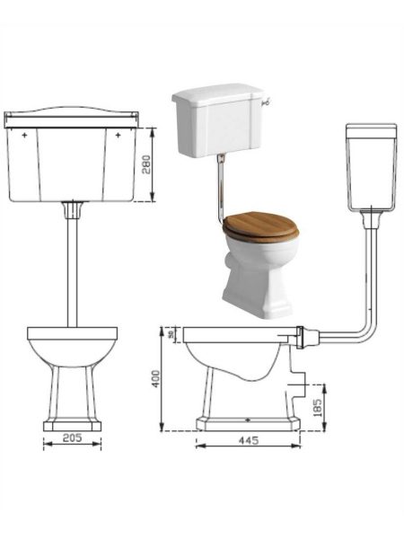 WESTBURY Close Coupled Toilet with Low Level Cistern including OAK Mdf Soft Closing Seat